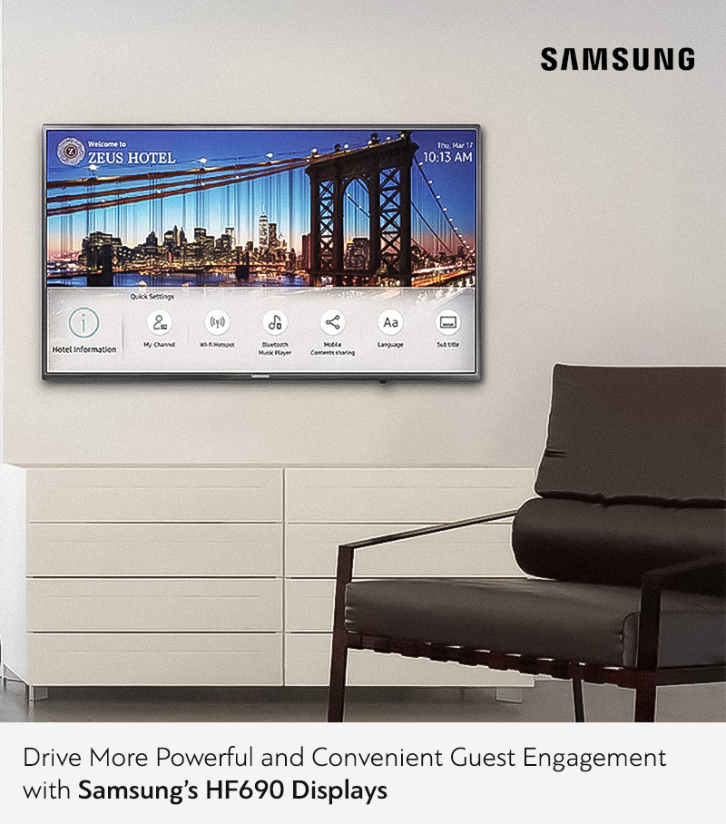 Αναβαθμίστε την εμπειρία κάθε επισκέπτη με Hotel TVs που συνδυάζουν ψυχαγωγία, πληροφορίες και κορυφαία άνεση. Με υψηλή ποιότητα εικόνας, αξιοπιστία και κεντρική διαχείριση, κάθε δωμάτιο γίνεται ένα ξεχωριστό περιβάλλον που ενισχύει την ικανοποίηση και την αποδοτικότητα του ξενοδοχείου σας.